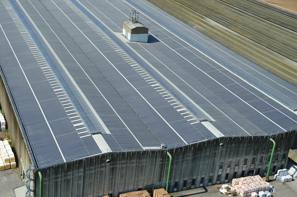 Sui tetti a falda della fabbrica abbiamo installato un impianto a media tensione della potenza di 0.8 MWh composto da oltre 6000 moduli fotovoltaici in silicio amorfo che coprono un’area pari a 1684 m2. Tale impianto non solo contribuisce in modo massiccio alla riduzione delle emissioni di CO₂ ma consente all’azienda di essere più competitiva e di rendere più stabile la pianificazione economica nel tempo.